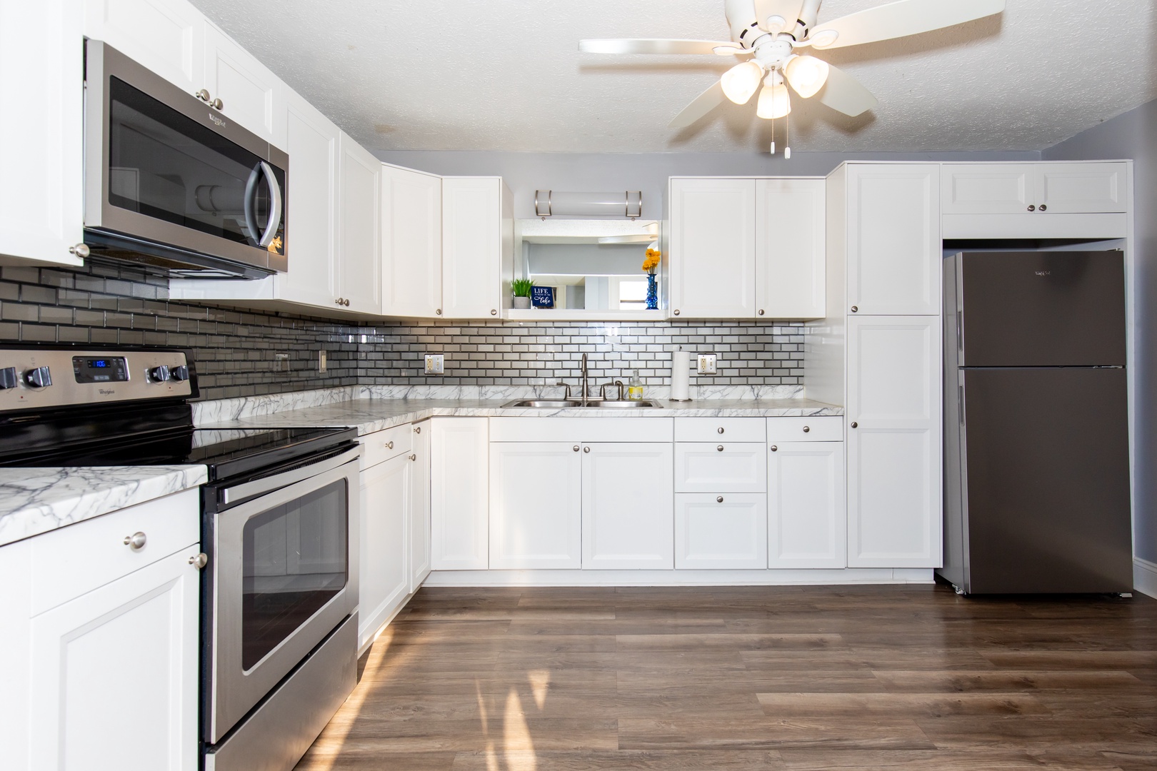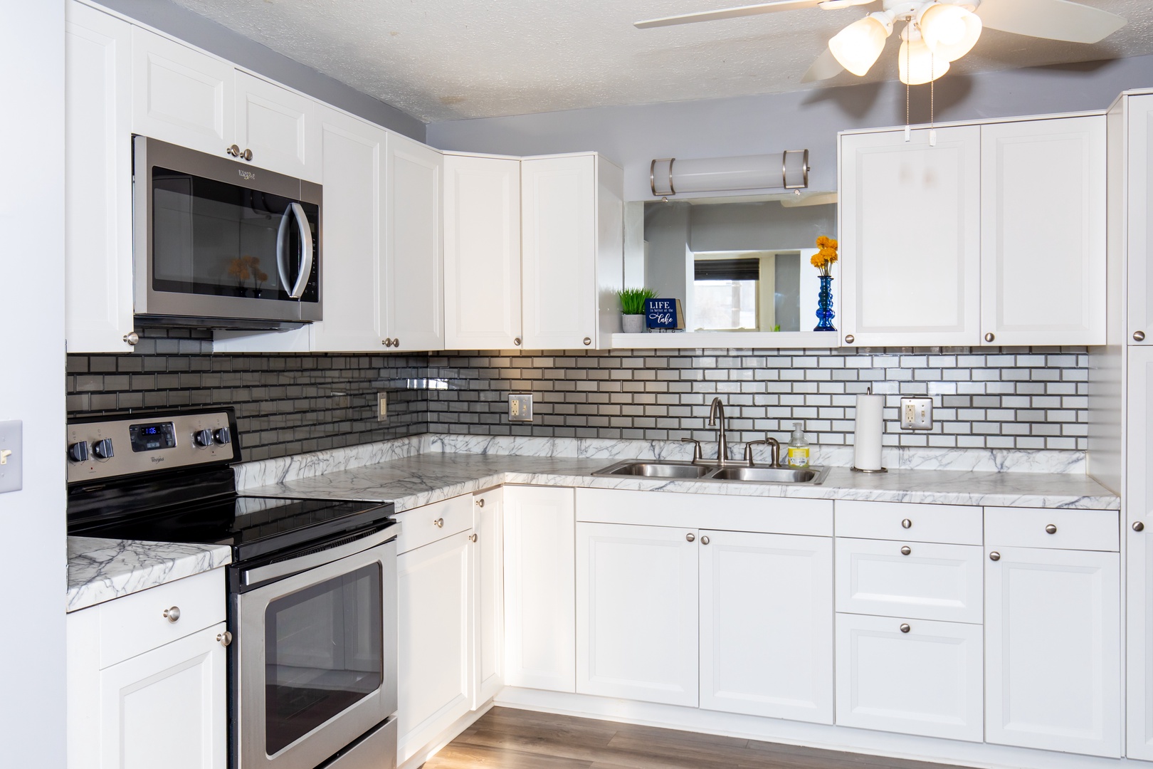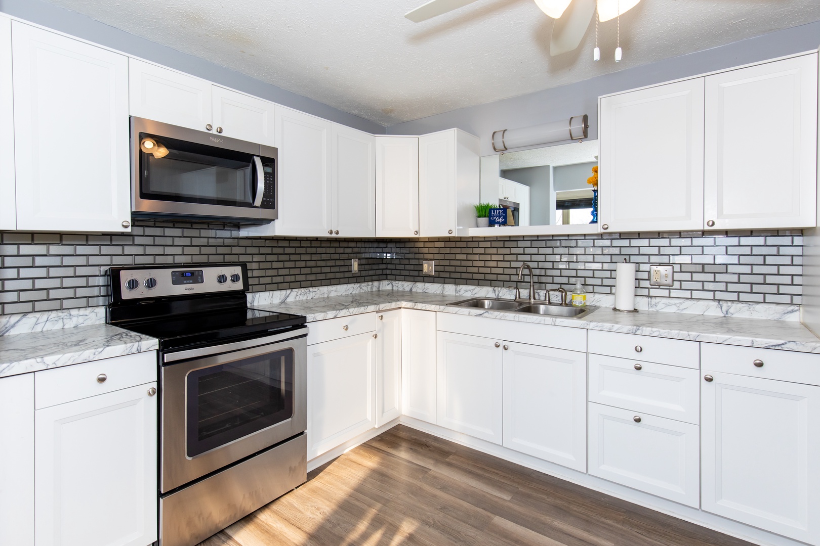 📺 Chill Out: The spacious living room is your ultimate relaxation zone, equipped with a large TV and plenty of room to kick back and unwind after a day of exploring. The kitchen is fully stocked to cook and contains a Keurig coffee maker.