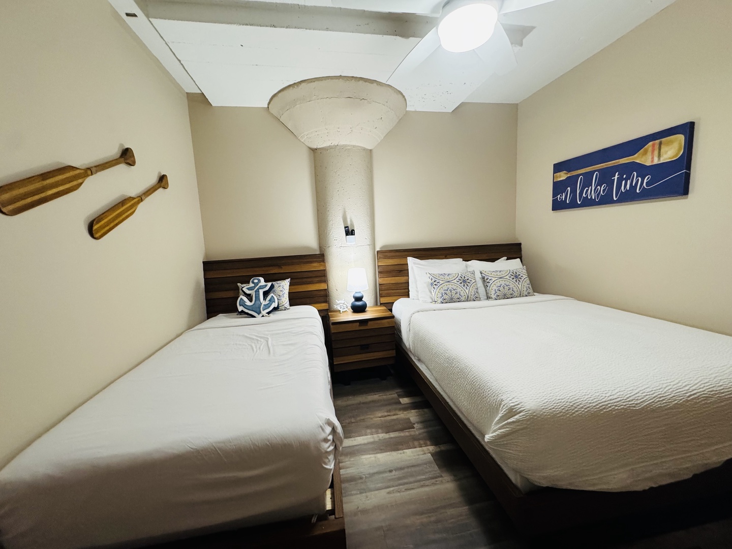 • Bedroom 2: One queen + one twin (perfect for families or friends)