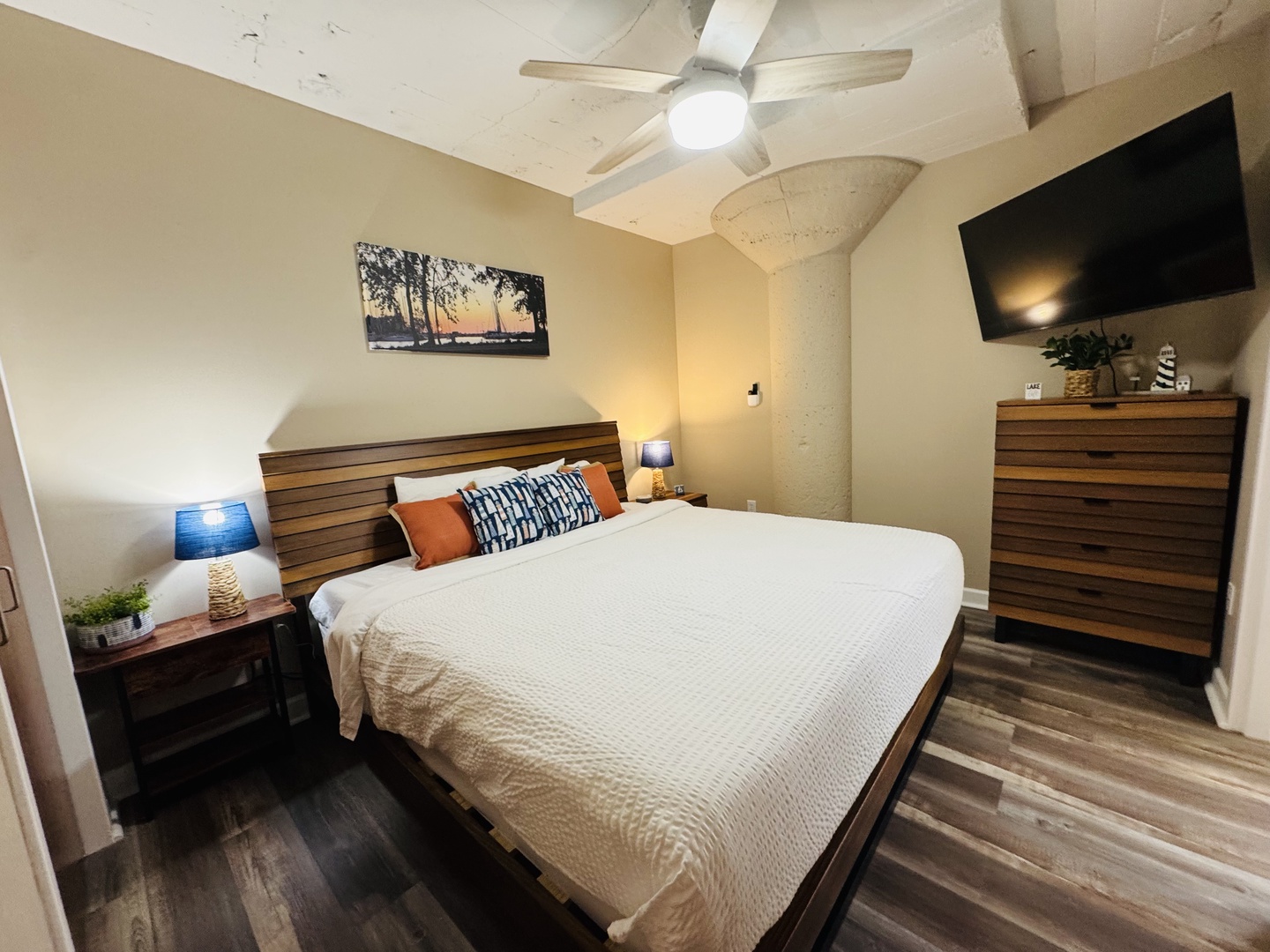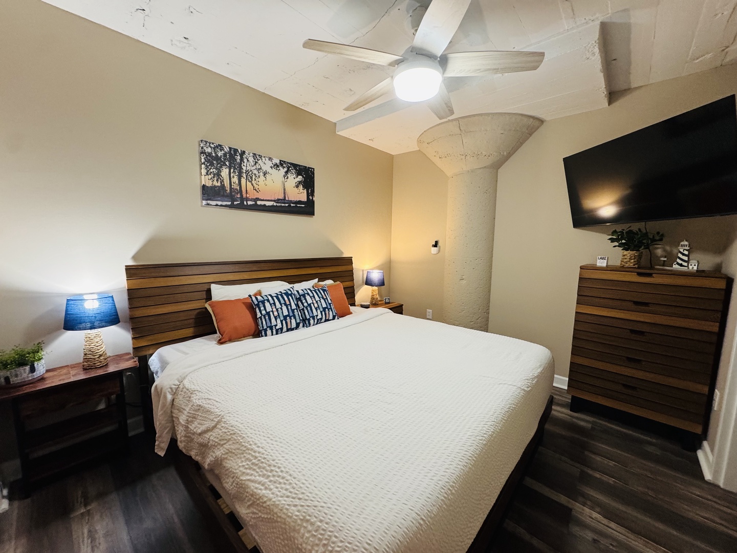 King suite + queen/twin room, modern vibes, and the perfect first‑floor location for easy breezy vacation living. Minutes to downtown eats, lake views, and all the Sandusky fun.