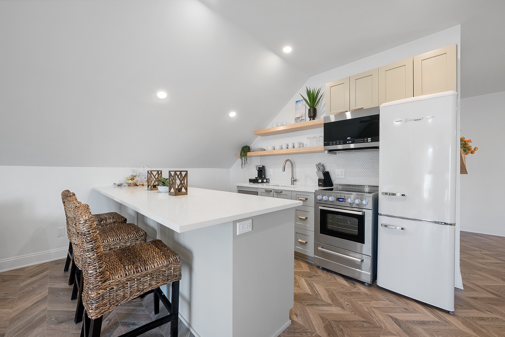 This third-floor unit has been fully renovated and takes up the entire floor. This unit features a gorgeous kitchen with bar seating, a spacious living room, four spacious bedrooms, and two beautifully finished bathrooms. There is also a private outdoor balcony on the top floor with seating to hang out and enjoy the view.