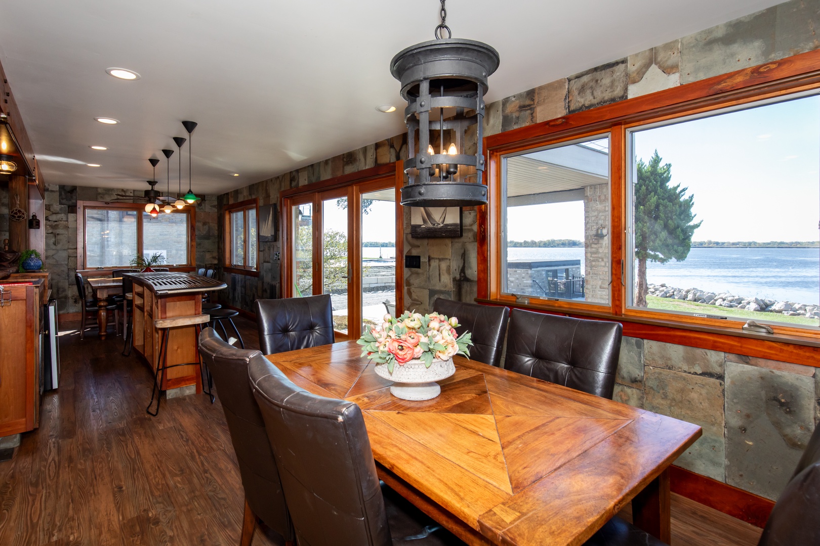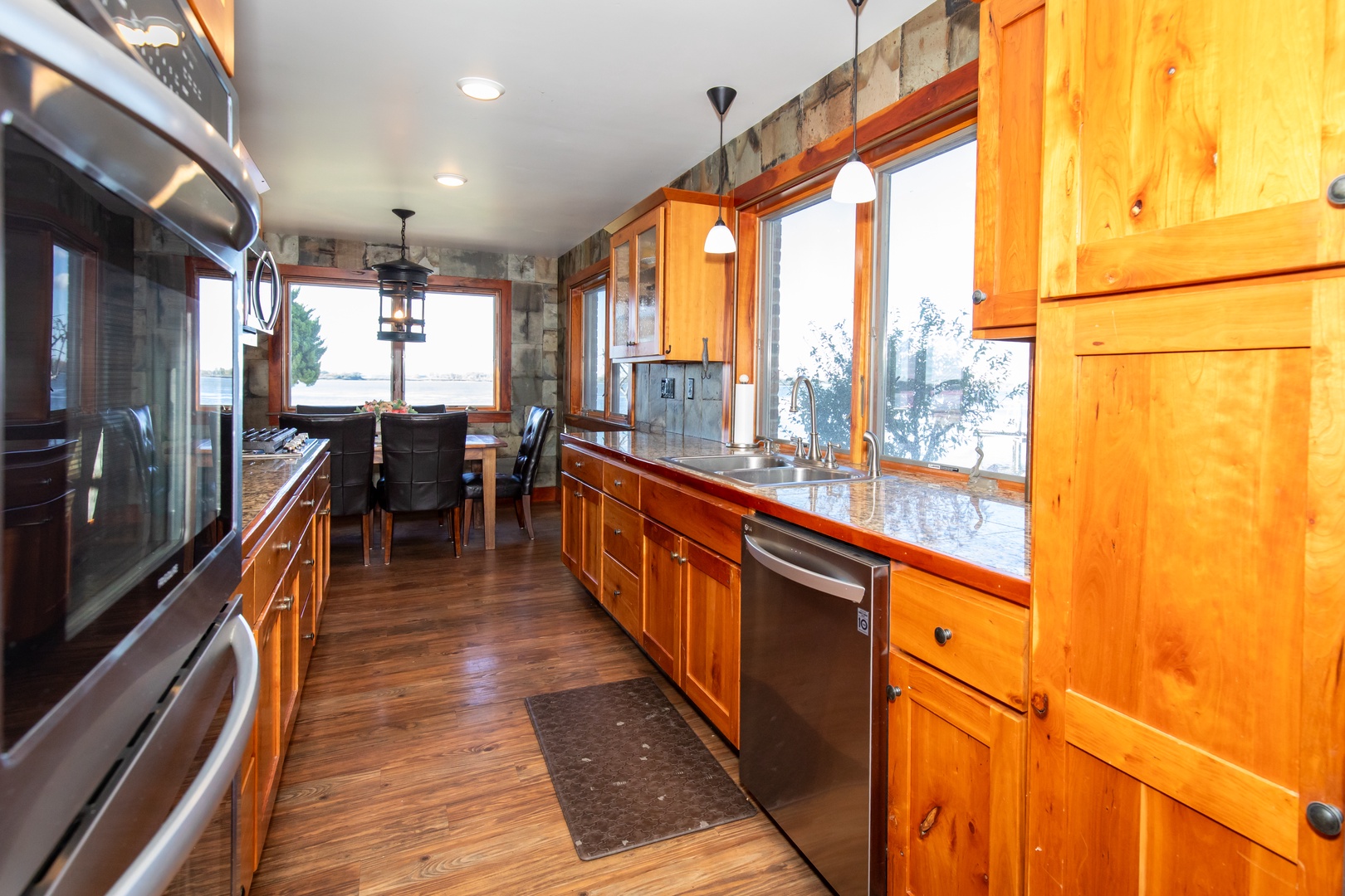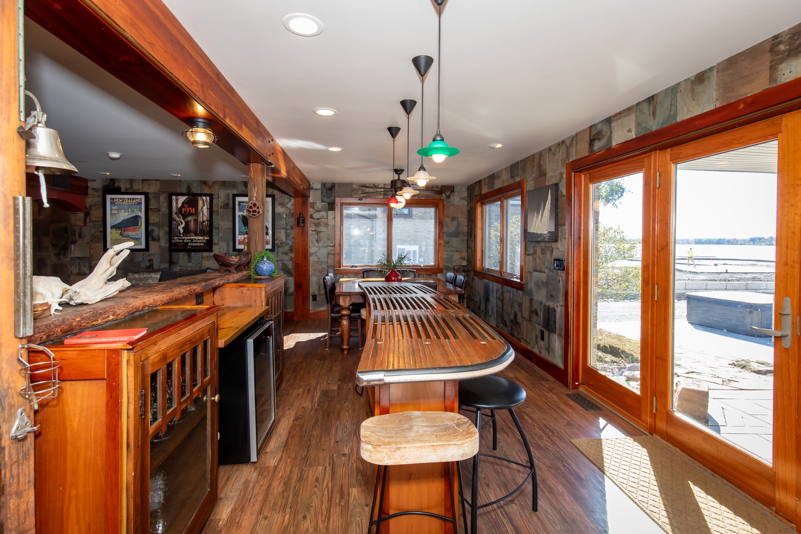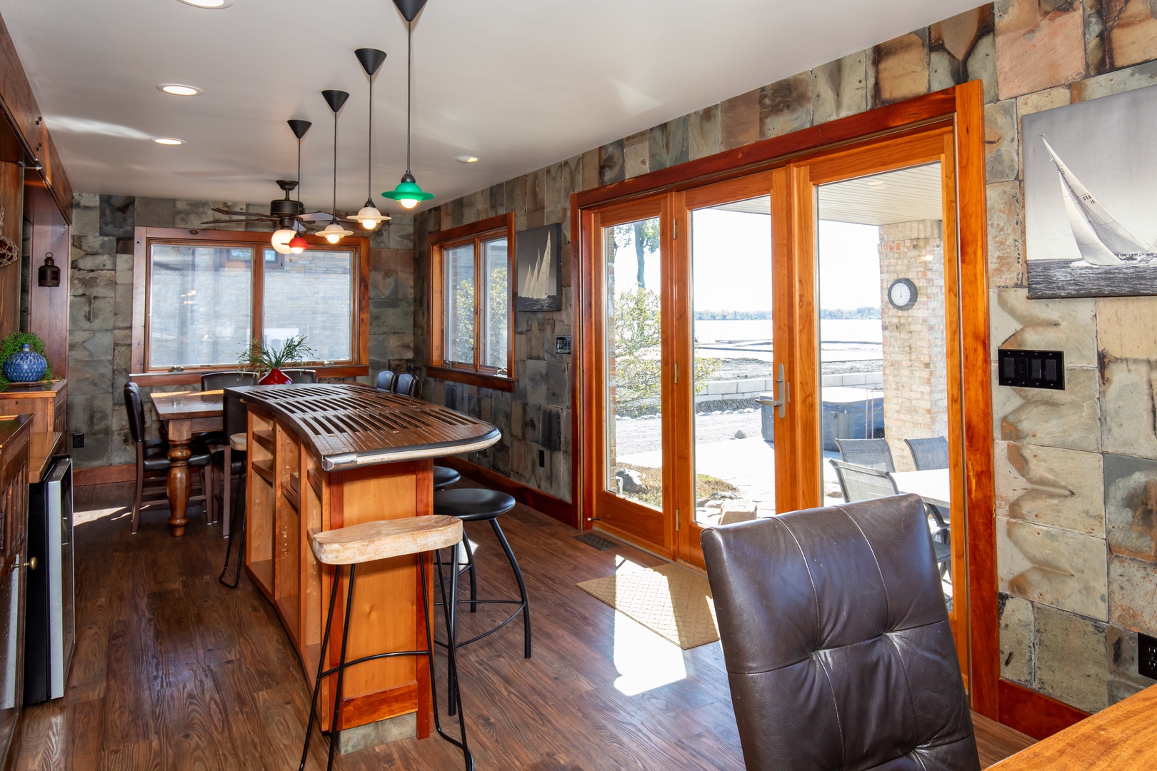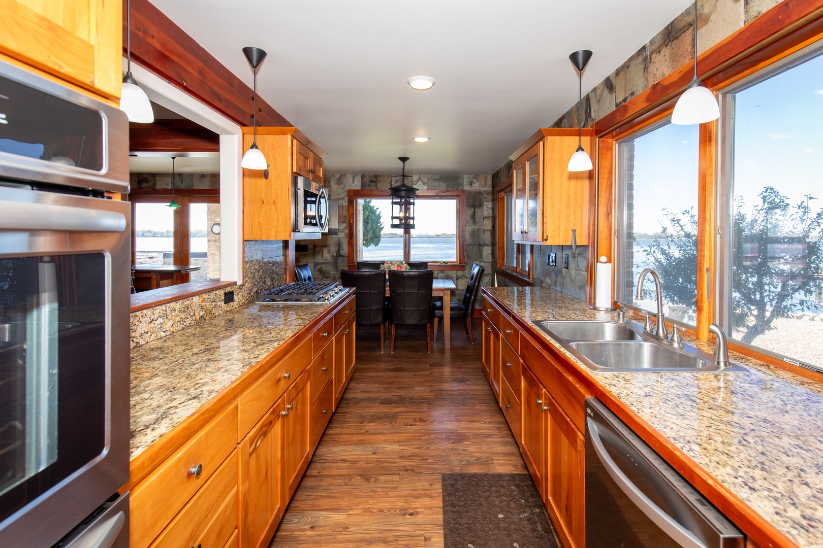 - Gourmet kitchen + teak boat bar