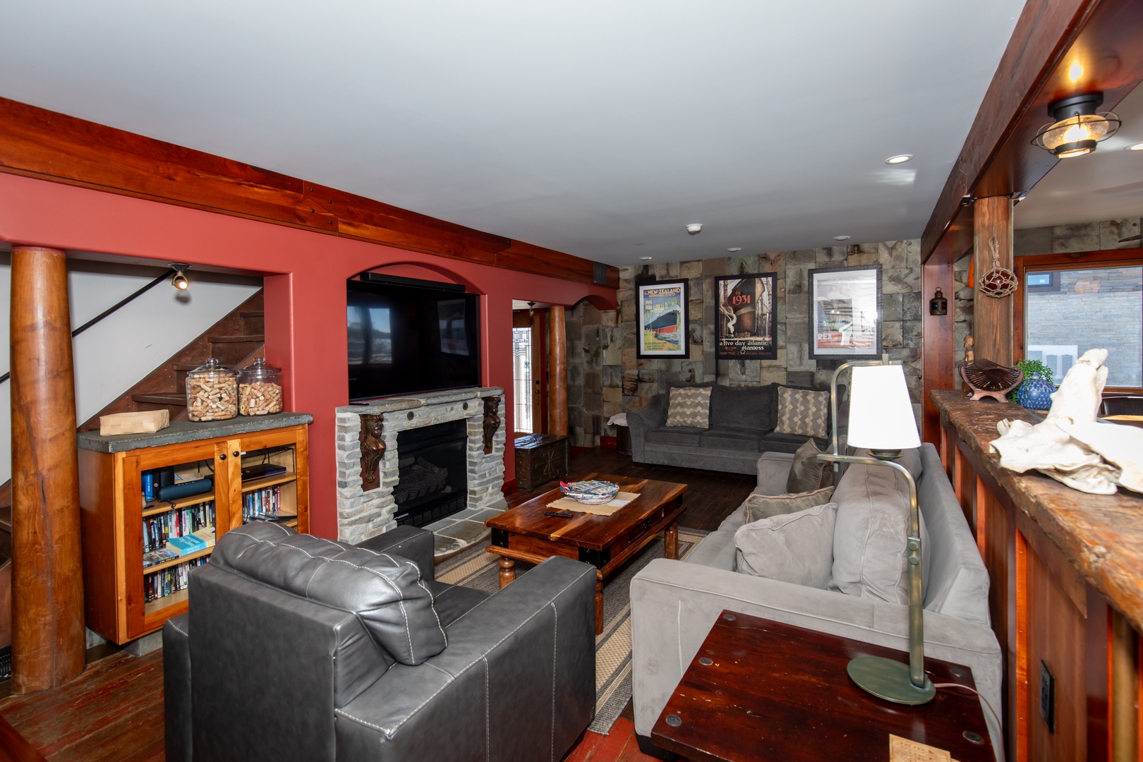 - 65" Smart TV + gas fireplace