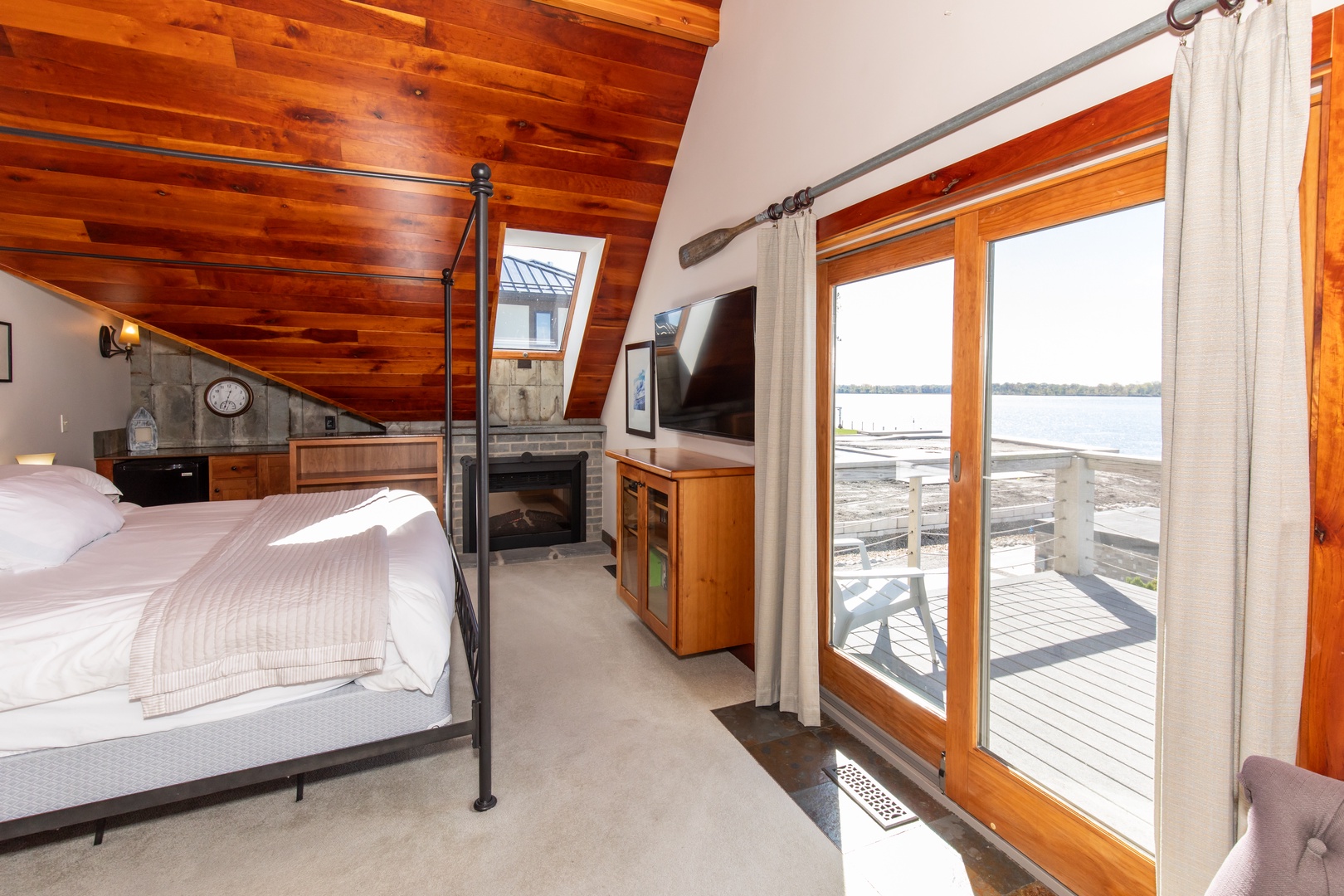 - Queen Suite: Lake view + TV + closet