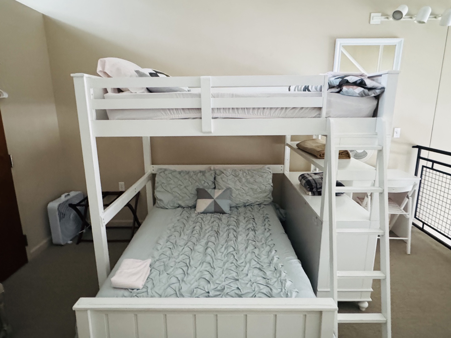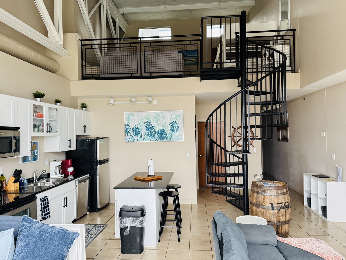 This can be your families home base while visiting Sandusky! Mornings start with lake breezes and evenings end with coaster lights twinkling across the water. This condo is comfy, colorful, and designed for easy, happy group stays. The loft is open to the living room below. Fun for families who like to stay connected.