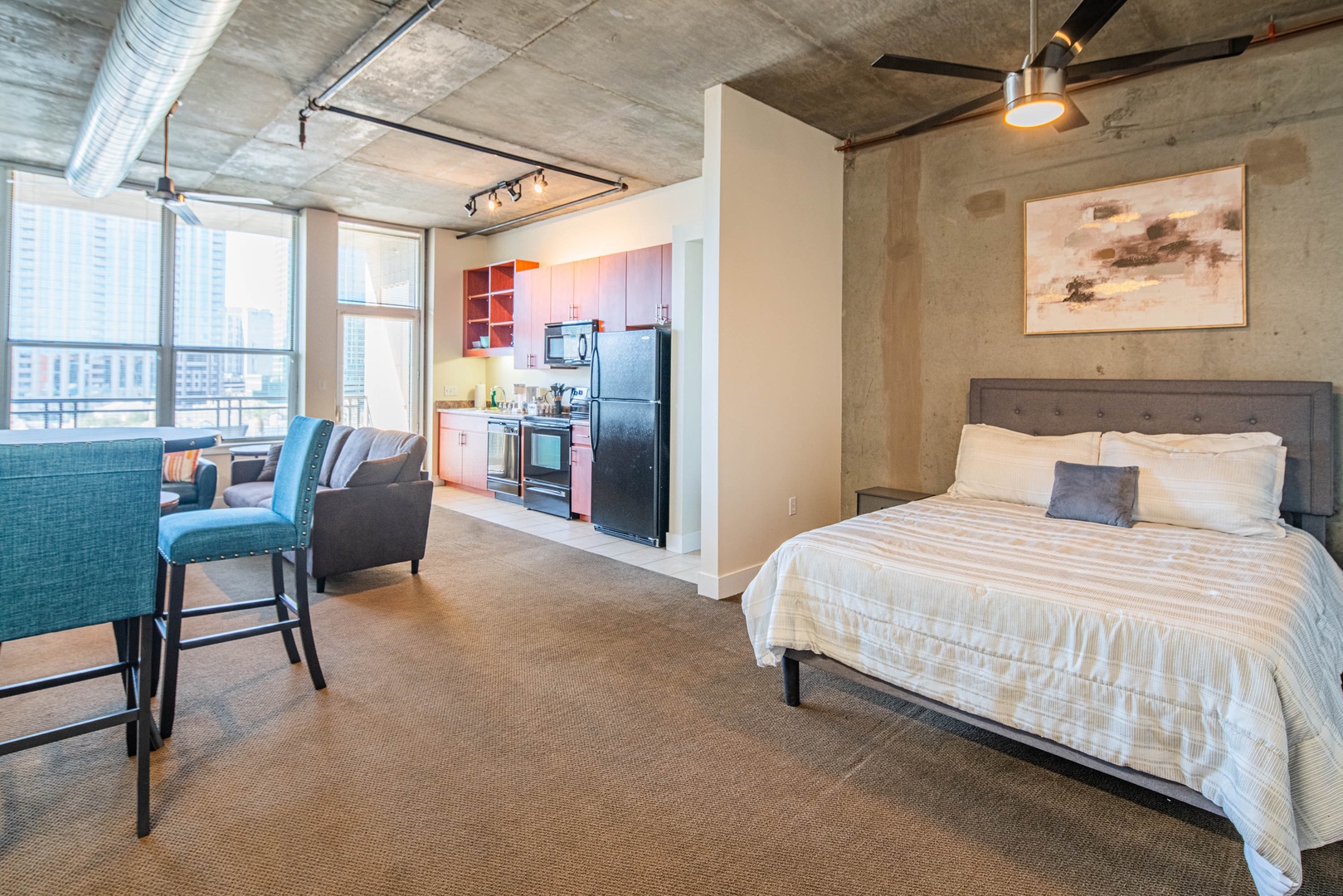 Step into a bright, modern studio designed for comfort and effortless downtown living: