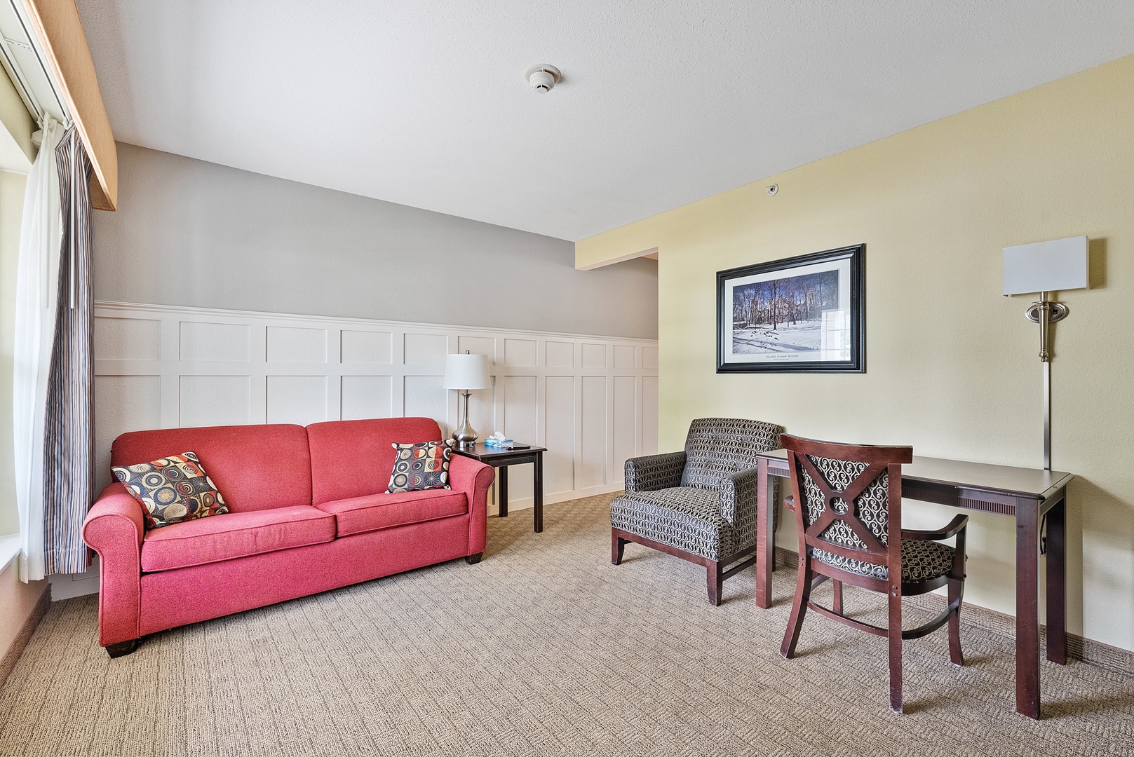 Each suite features mini kitchen appliances, flat-screen TVs, and high-speed internet access. A large swimming pool with therapeutic seating areas and an outdoor hot tub sits in our beautifully landscaped courtyard. Across the street, the resort offers a three-tiered deck with seating to enjoy the views of Lake Erie, Marblehead Peninsula, and Cedar Point.