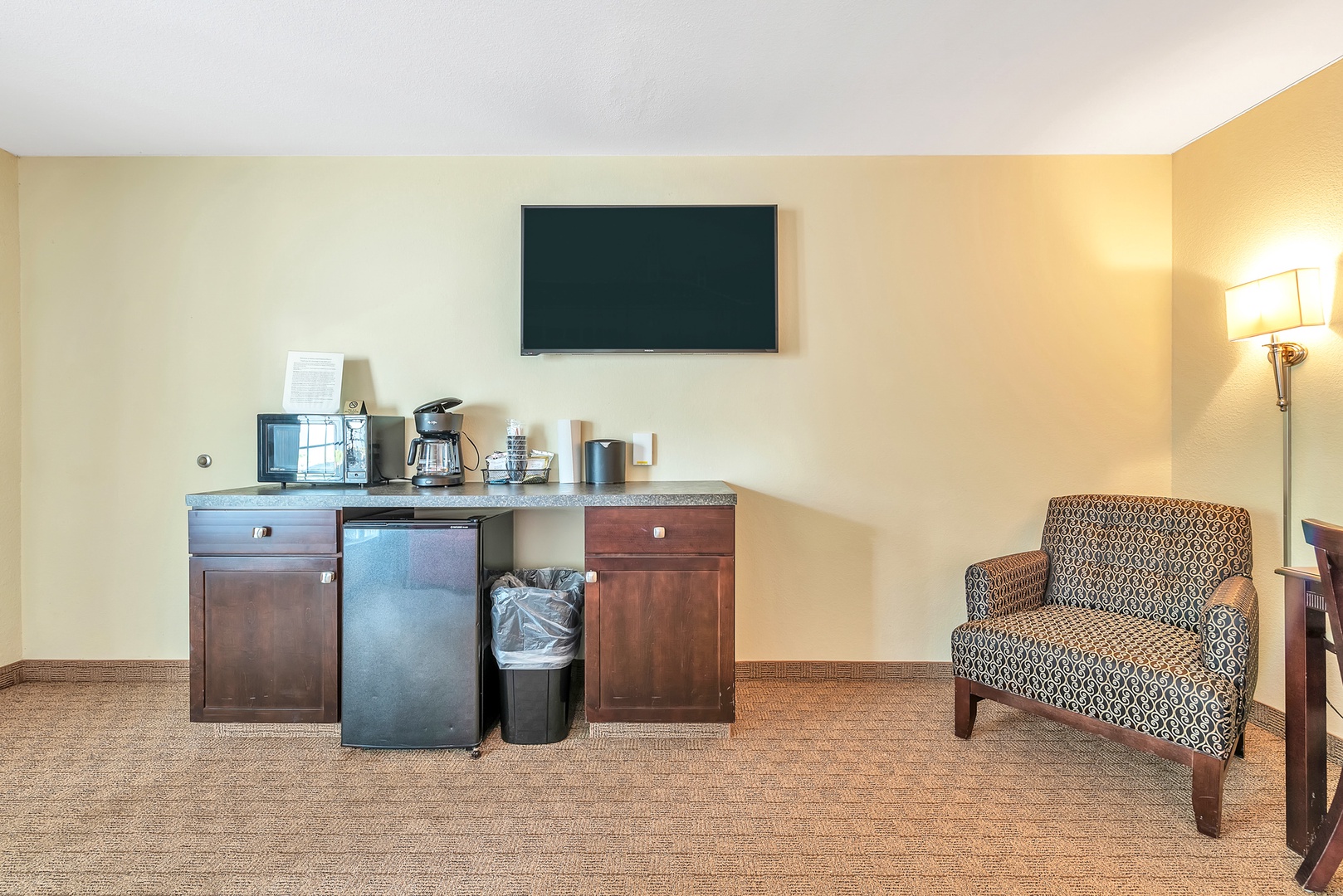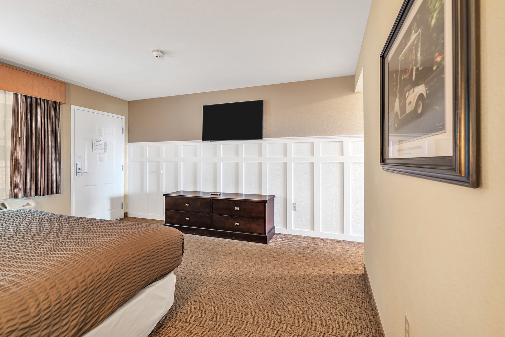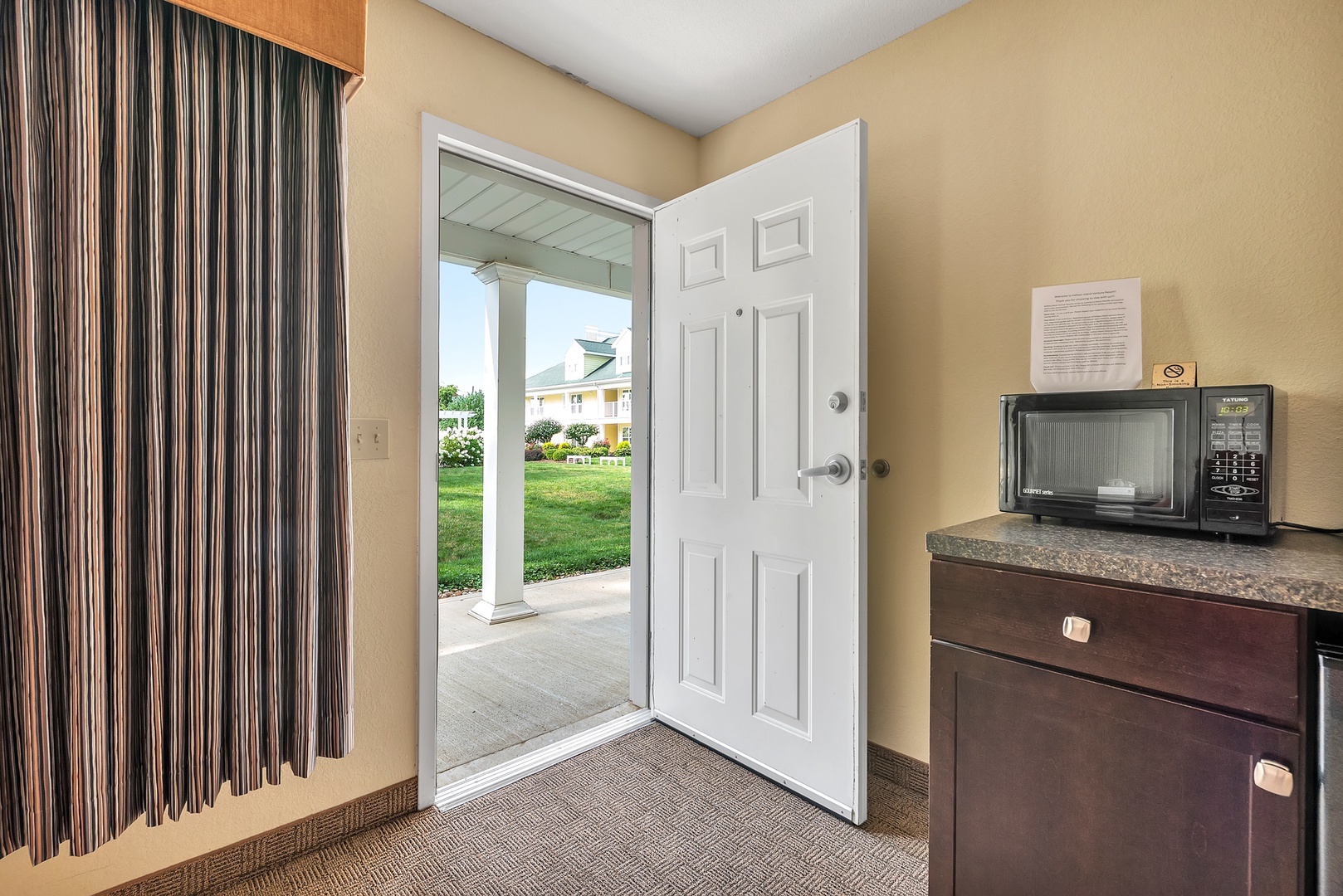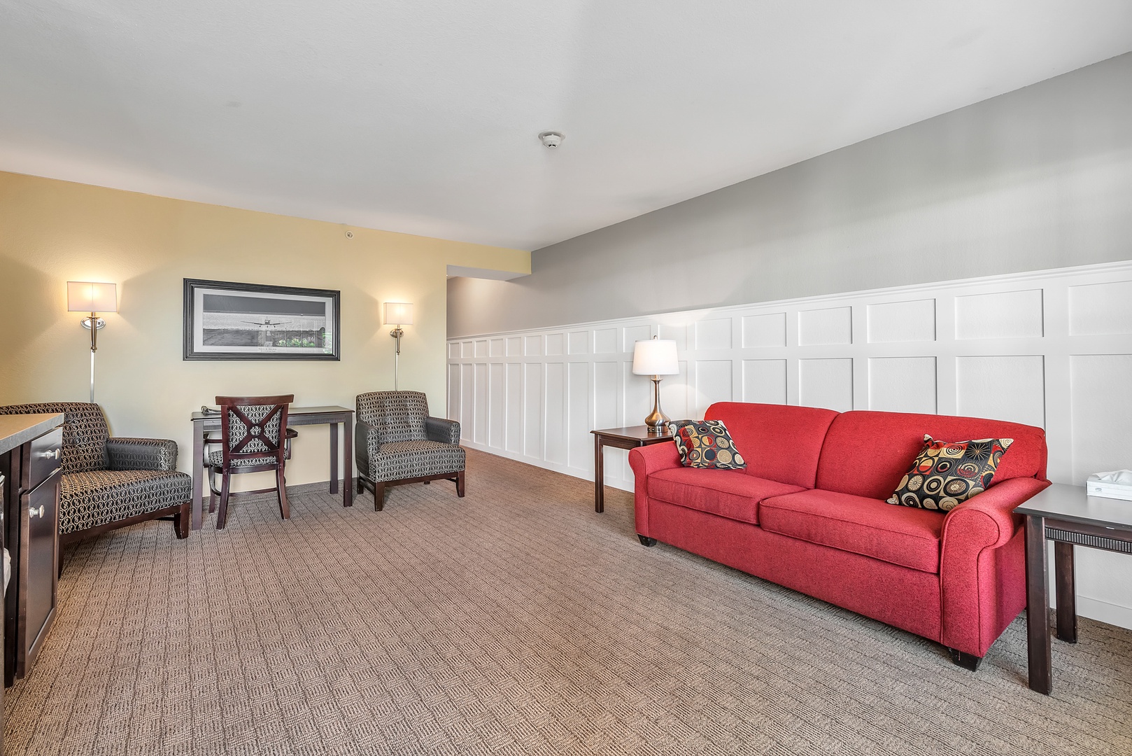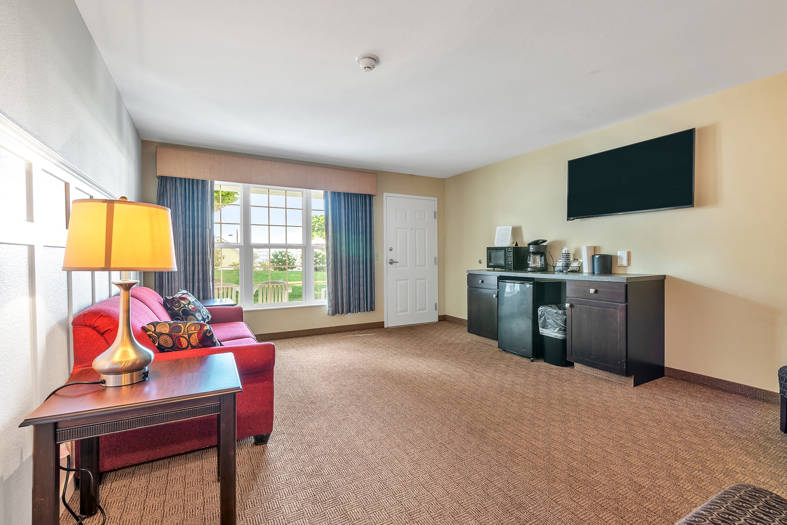 Each suite features mini kitchen appliances, flat-screen TVs, and high-speed internet access. A large swimming pool with therapeutic seating areas and an outdoor hot tub sits in our beautifully landscaped courtyard. Across the street, the resort offers a three-tiered deck with seating to enjoy the views of Lake Erie, Marblehead Peninsula, and Cedar Point.