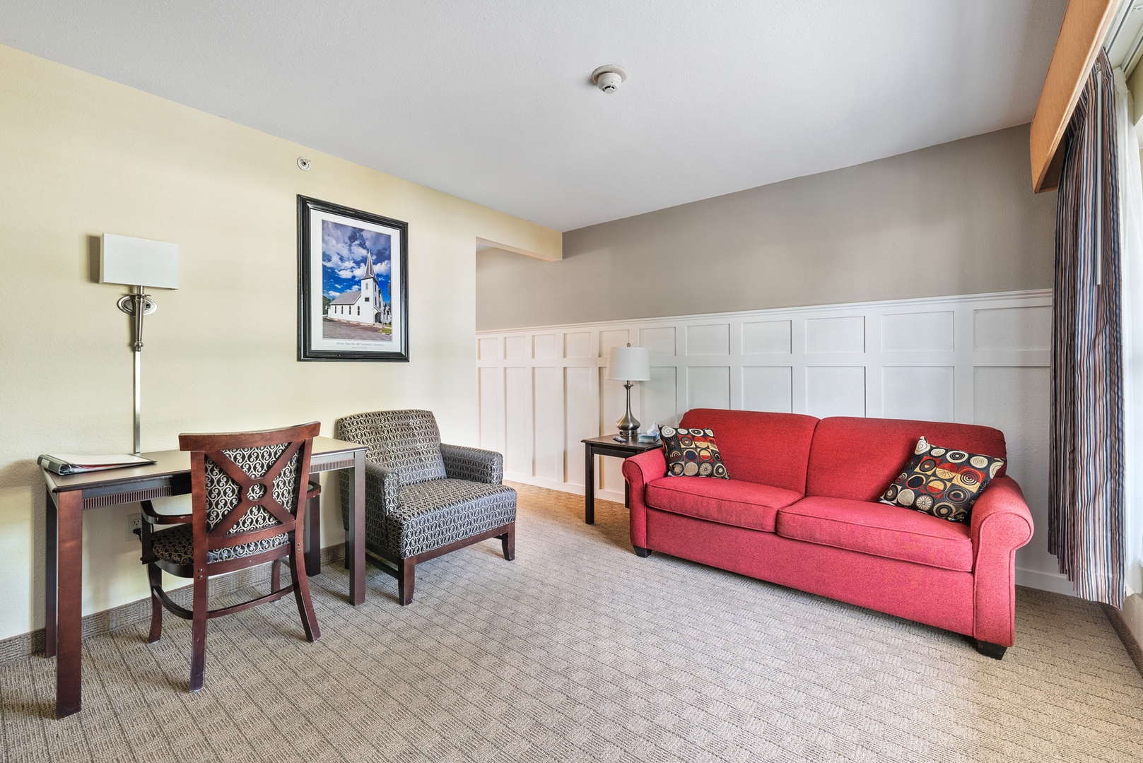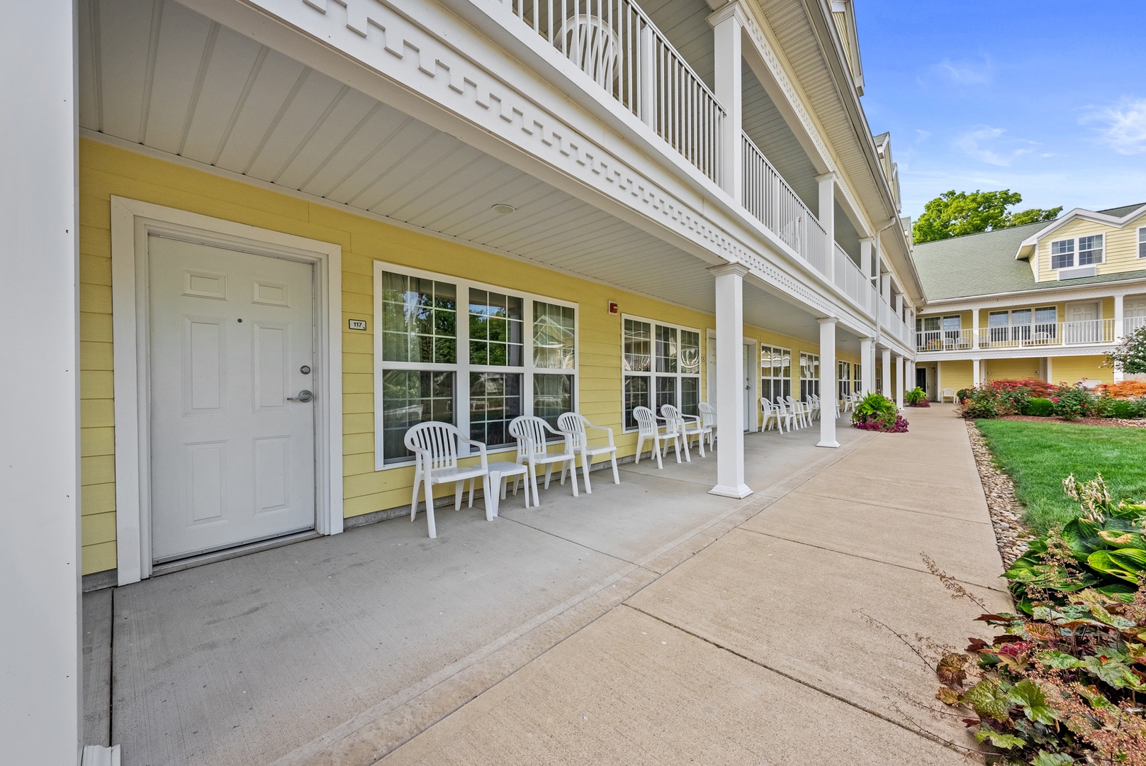 Each suite features mini kitchen appliances, flat-screen TVs, and high-speed internet access. A large swimming pool with therapeutic seating areas and an outdoor hot tub sits in our beautifully landscaped courtyard. Across the street, the resort offers a three-tiered deck with seating to enjoy the views of Lake Erie, Marblehead Peninsula, and Cedar Point.
