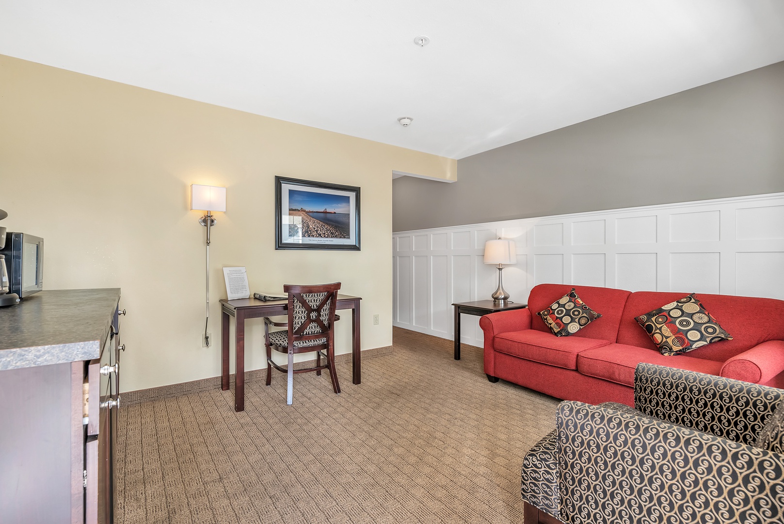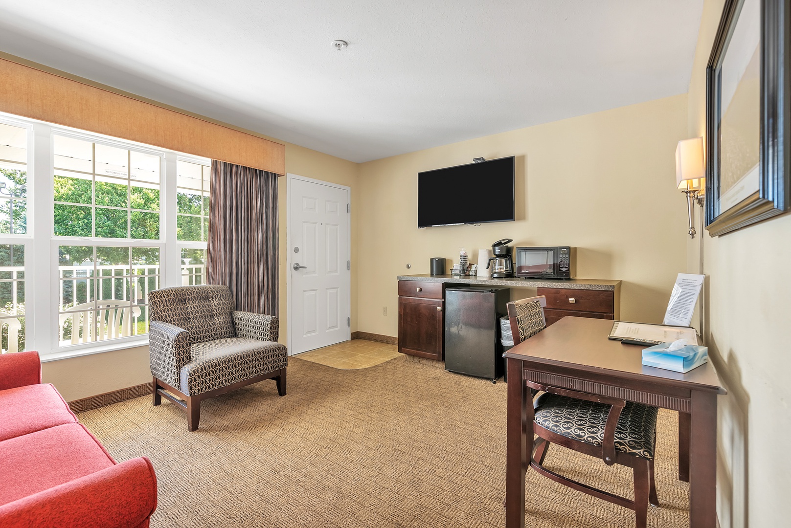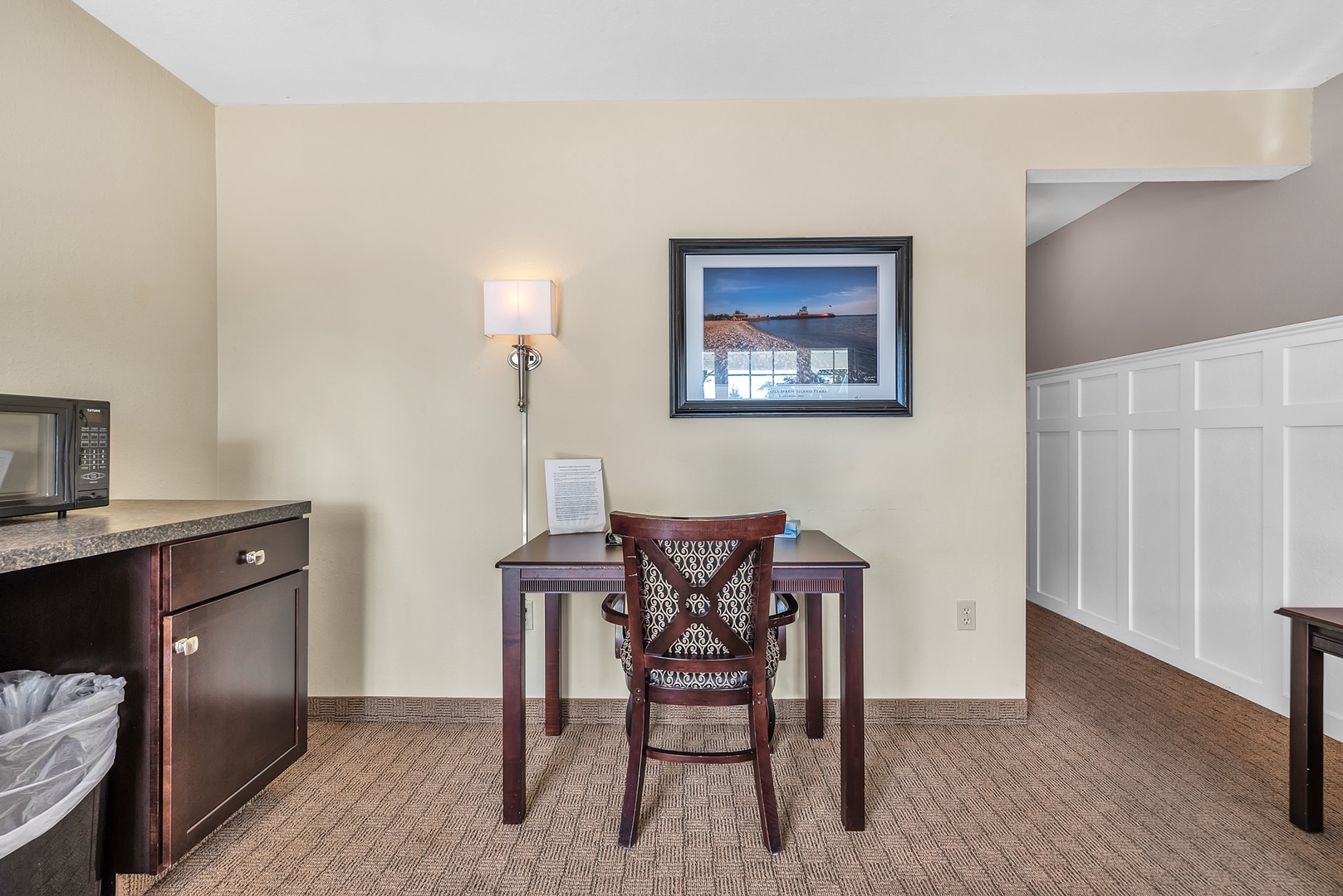 Each suite features mini kitchen appliances, flat-screen TVs, and high speed internet access. A large swimming pool with therapeutic seating areas and an outdoor hot tub sits in our beautifully landscaped courtyard. Across the street, the resort offers a three-tiered deck with seating to enjoy the views of Lake Erie, Marblehead Peninsula, and Cedar Point.