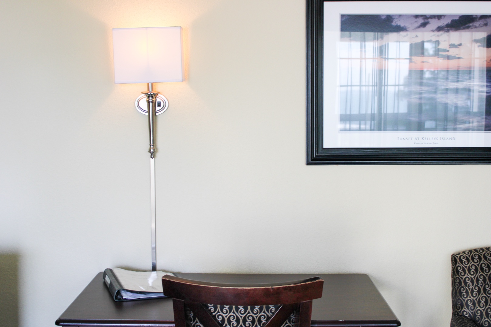 Each suite features mini kitchen appliances, flat-screen TVs, and high speed internet access. A large swimming pool with therapeutic seating areas and an outdoor hot tub sits in our beautifully landscaped courtyard. Across the street, the resort offers a three-tiered deck with seating to enjoy the views of Lake Erie, Marblehead Peninsula, and Cedar Point.