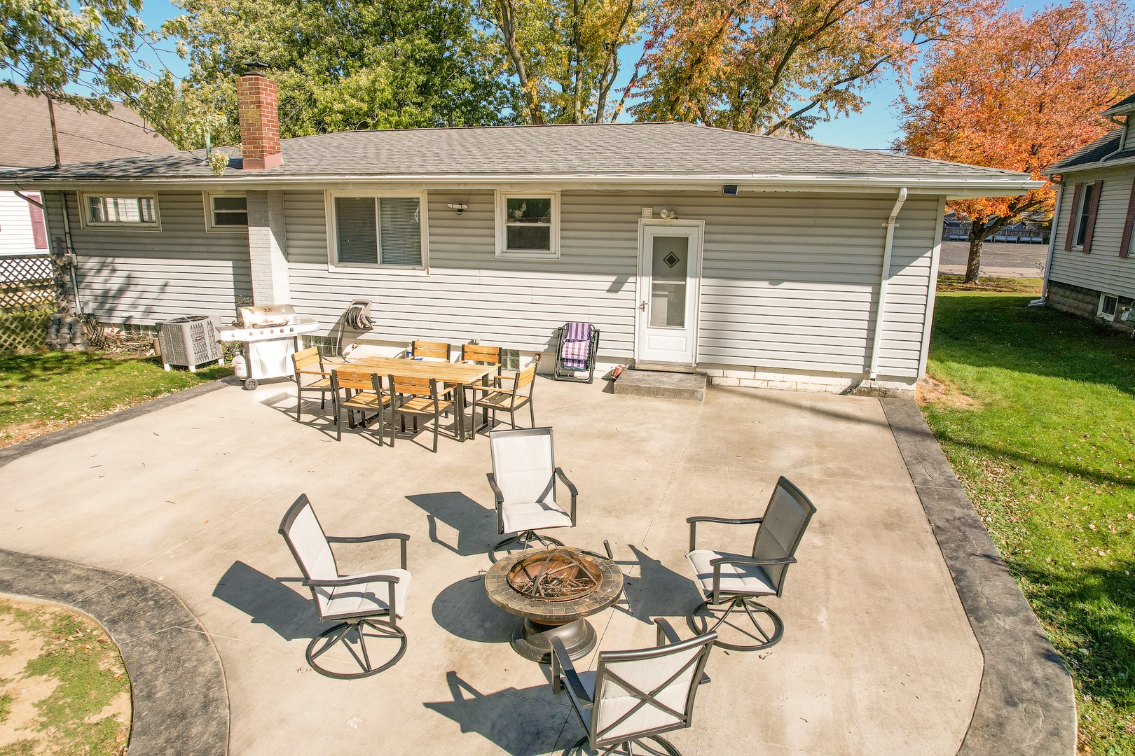 This quaint little lake/beach neighborhood is cozy, safe, and comes alive in the summertime. Tons of places to walk to and plenty of parking. House has two living rooms. One on the upper level and one on the lower level. There is a large kitchen with dining area, 2 full bathrooms and 1 half bathroom. The large backyard has a porch area with a dining table and chairs. There is also a fire pit with seating as well.