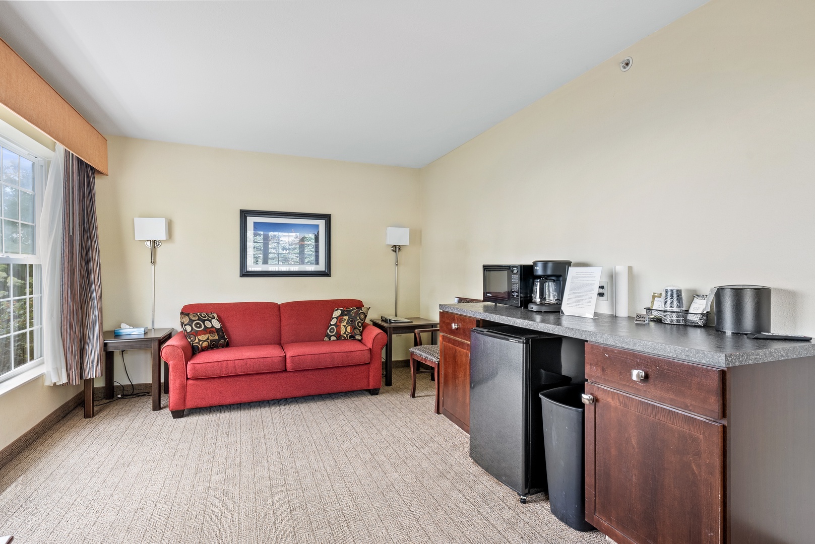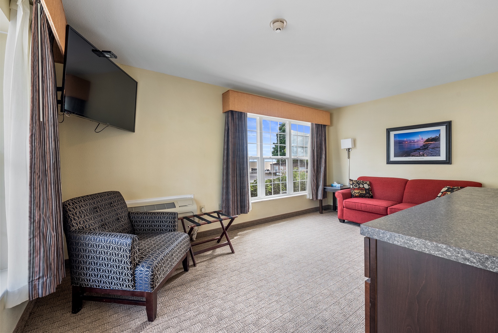 Each suite features mini kitchen appliances, flat-screen TVs, and high-speed internet access. A large swimming pool with therapeutic seating areas and an outdoor hot tub sits in our beautifully landscaped courtyard. Across the street, the resort offers a three-tiered deck with seating to enjoy the views of Lake Erie, Marblehead Peninsula, and Cedar Point.