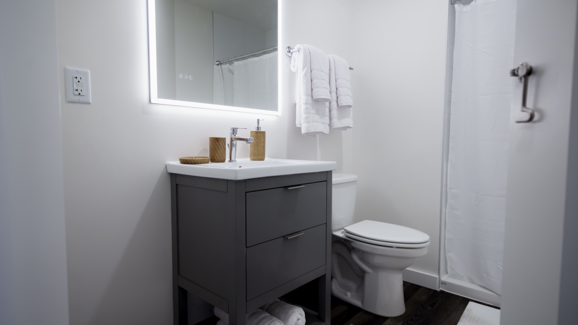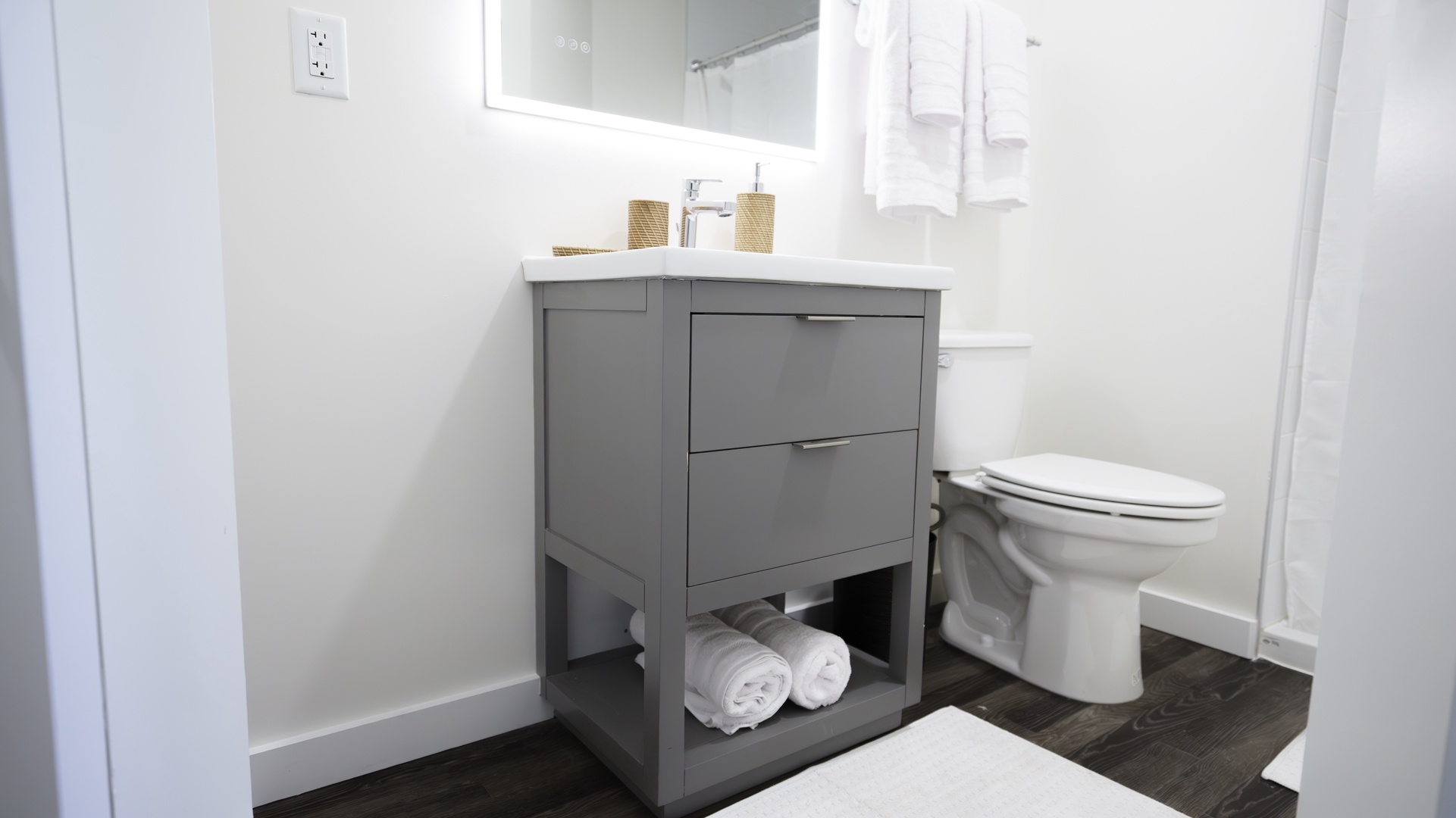 Enjoy a bright, spotless bathroom with a walk‑in shower simple, refreshing, and easy to maintain during your stay.