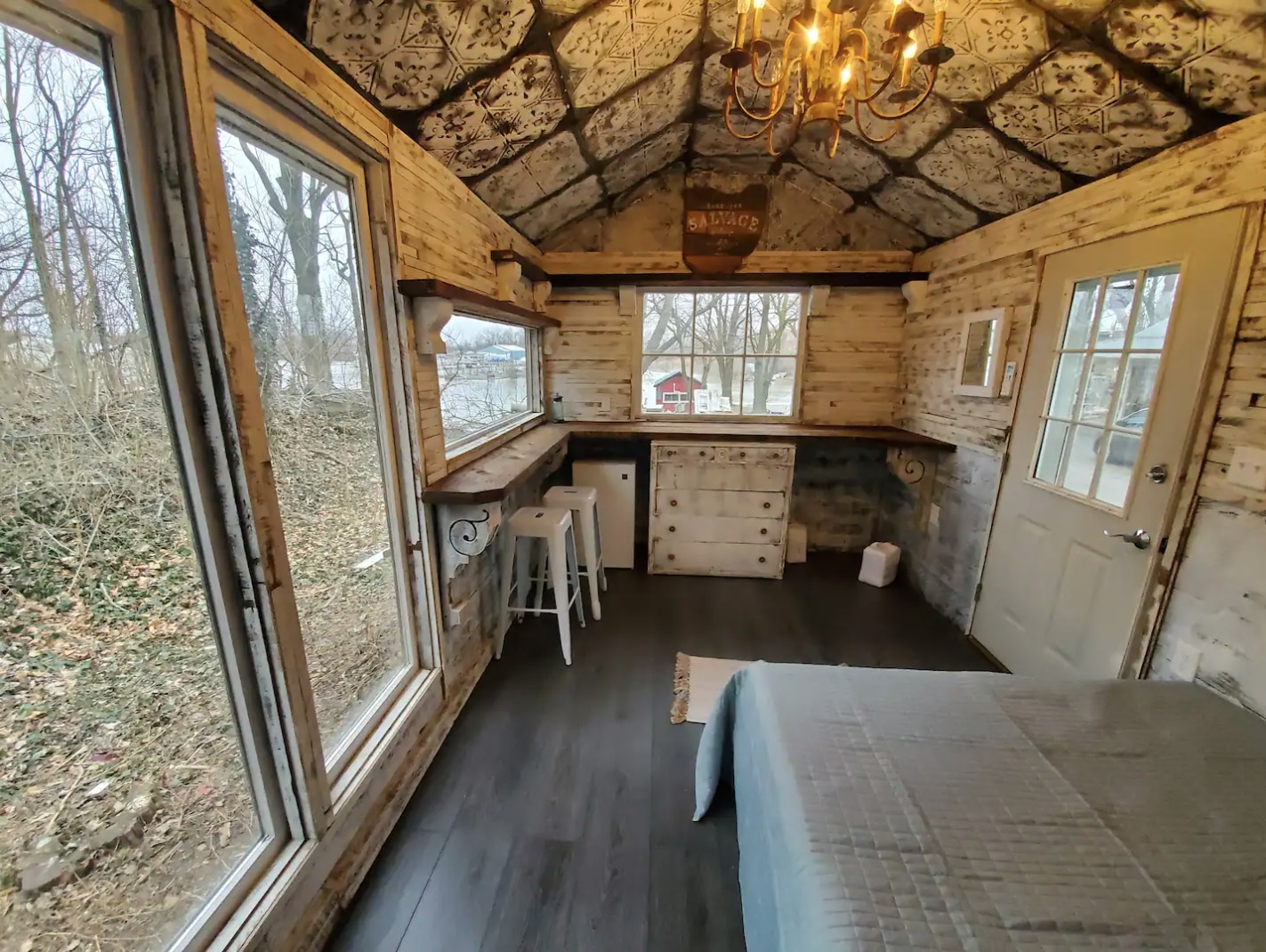 We like to refer to this as a “glamping” experience. There are rustic aspects that make it like camping, and yet other features that kick the experience up a notch (like flat screen television and WiFi).